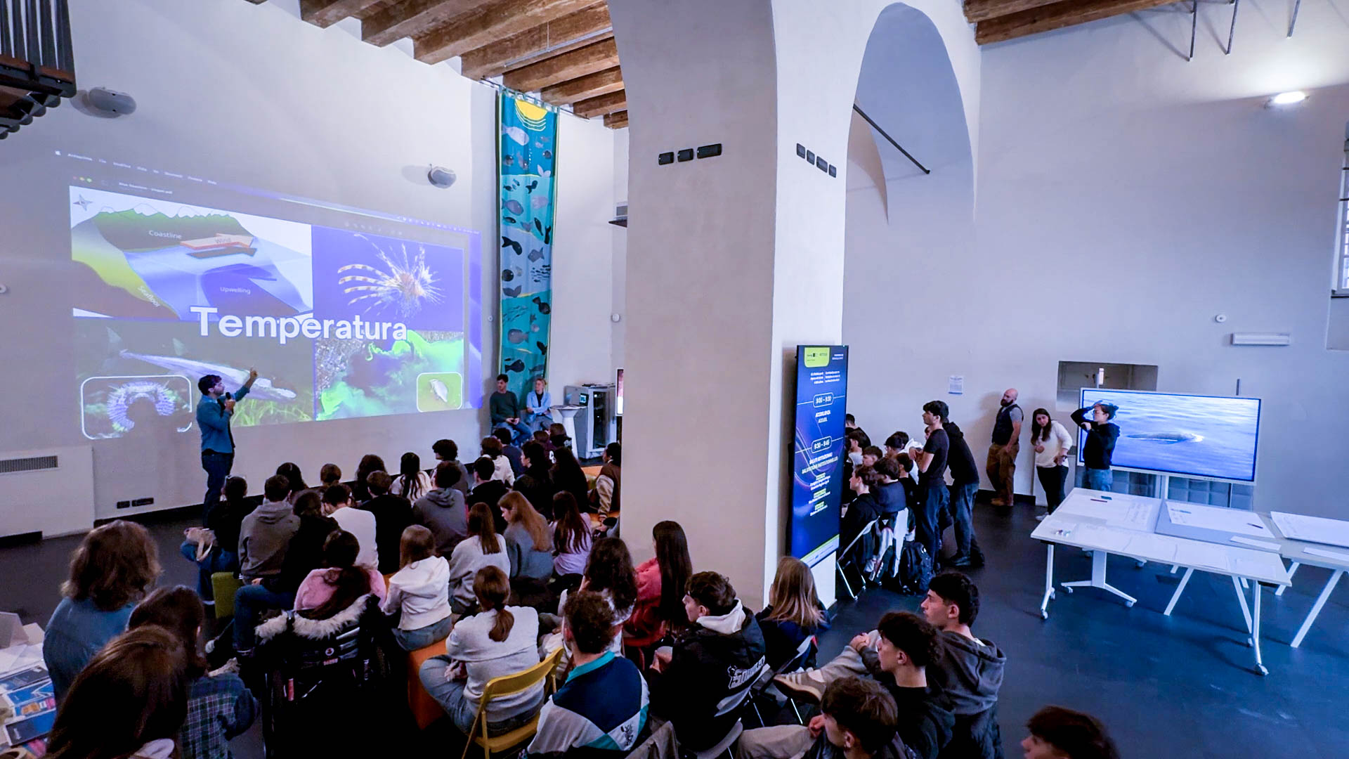 In the morning, we met with around 80 high school students from artistic and scientific backgrounds. Rather than a traditional lecture, the session became an open dialogue. We presented the environmental challenges behind Posidonia Art Reef, the scientific framework, and the idea of an underwater museum co-created with the community.